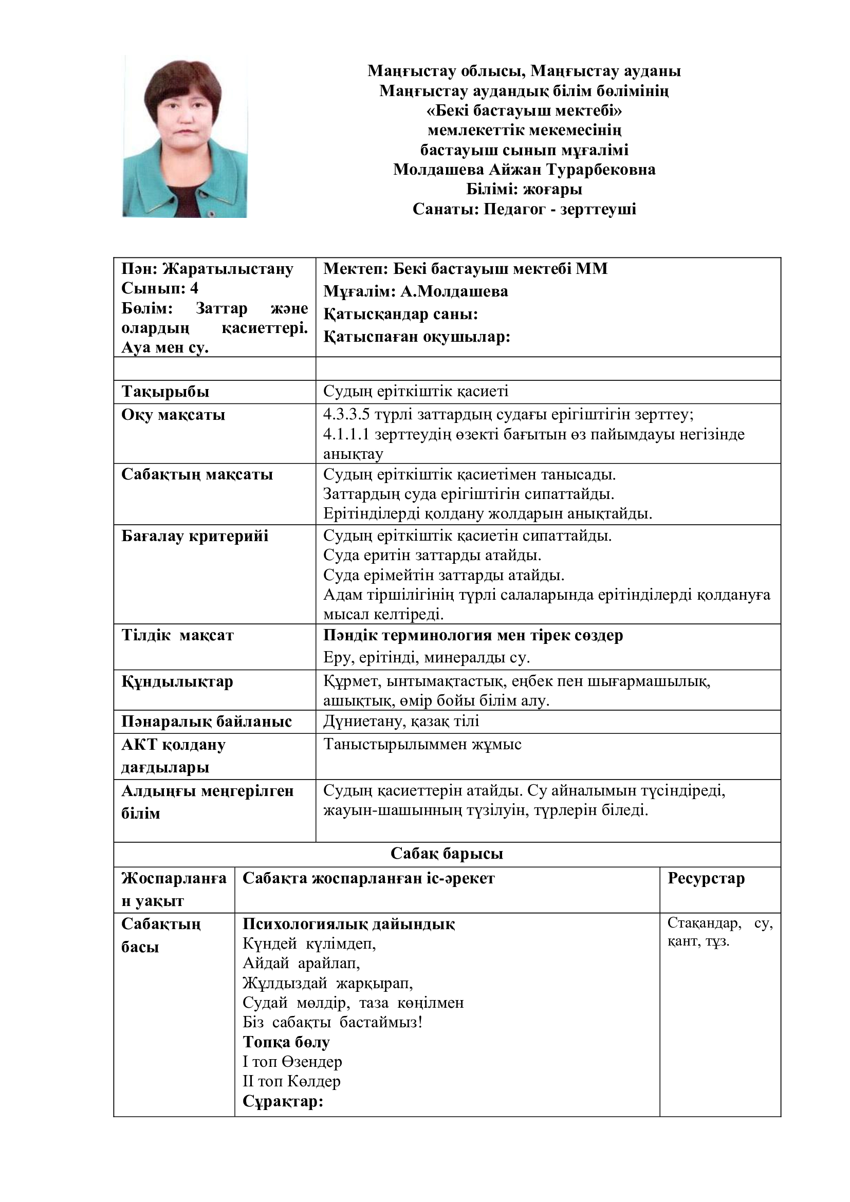 • Ашық сабақтар